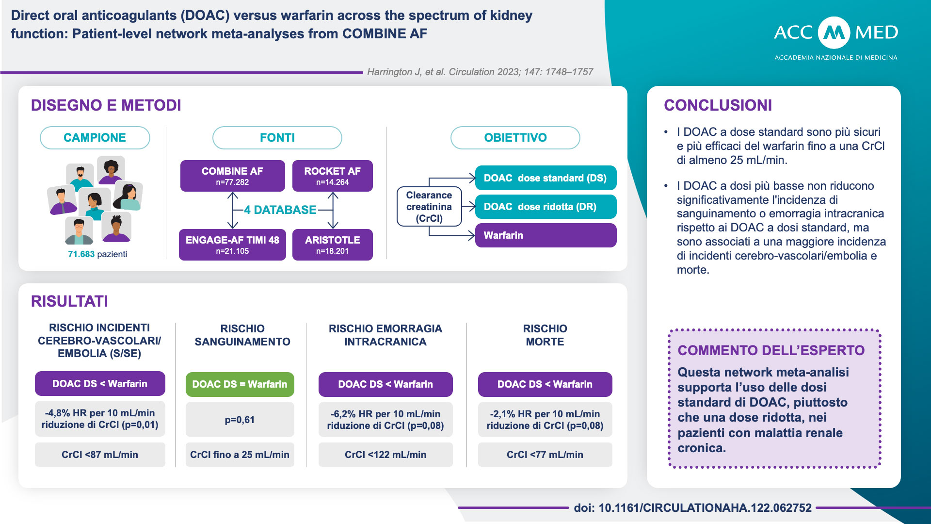Direct oral anticoagulants (DOAC) versus warfarin across the spectrum of kidney function: patient-level network meta-analyses from COMBINE AF